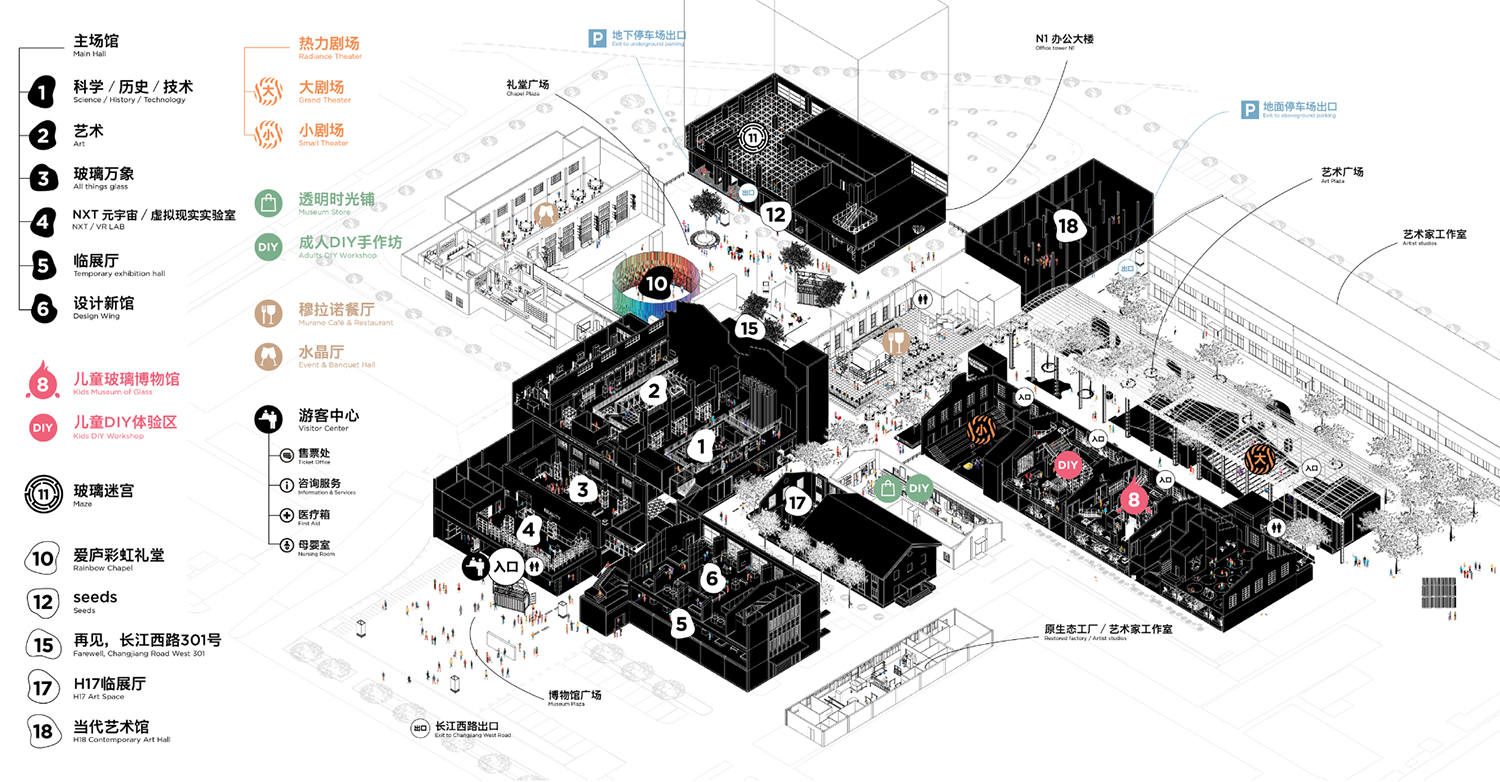 The Shanghai Museum of Glass has introduced a new museum guide and wayfinding system, designed to give visitors a clearer, more engaging, and visually consistent orientation throughout the museum park.